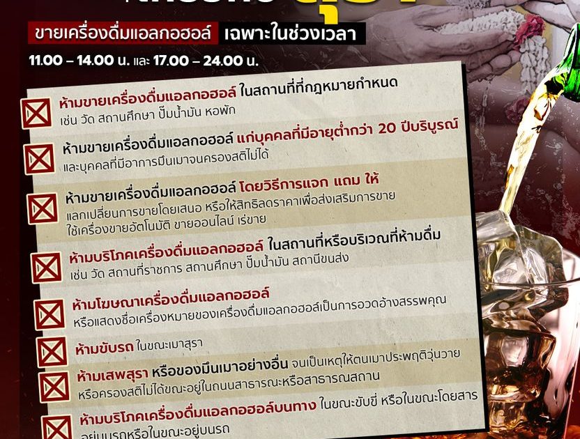 ห้ามขายเครื่องดื่มแอลกอฮอล์ ในสถานที่ที่กฎหมายกำหนด เช่น วัด สถานศึกษา ปั๊มน้ำมัน หอพัก